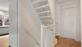 Overloop met toegang achterhuis, zwevend toilet, 2 zeer ruime slaapkamers, waarvan 1 met zijraam en 1 met schuifkastenwand. In 2018 is de luxe badkamer aangebracht en voorzien van een inloopdouche met glazen wanden, wastafelmeubel, designradiator en een driehoekig gevelraam. De gehele etage is voorzien van laminaatvloer (2019).