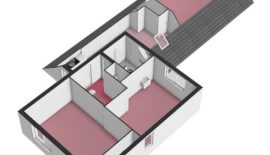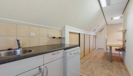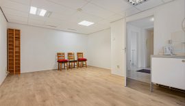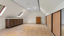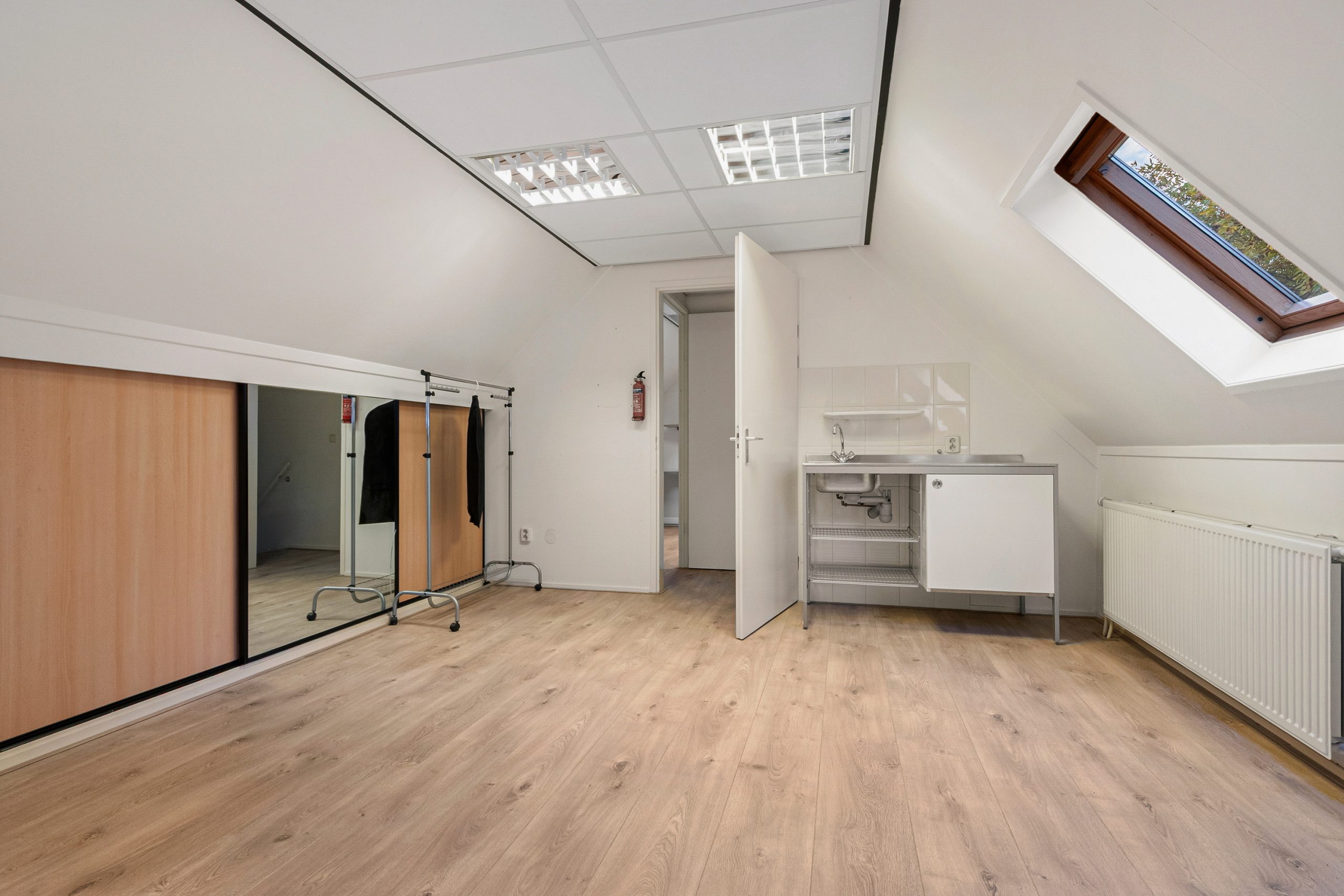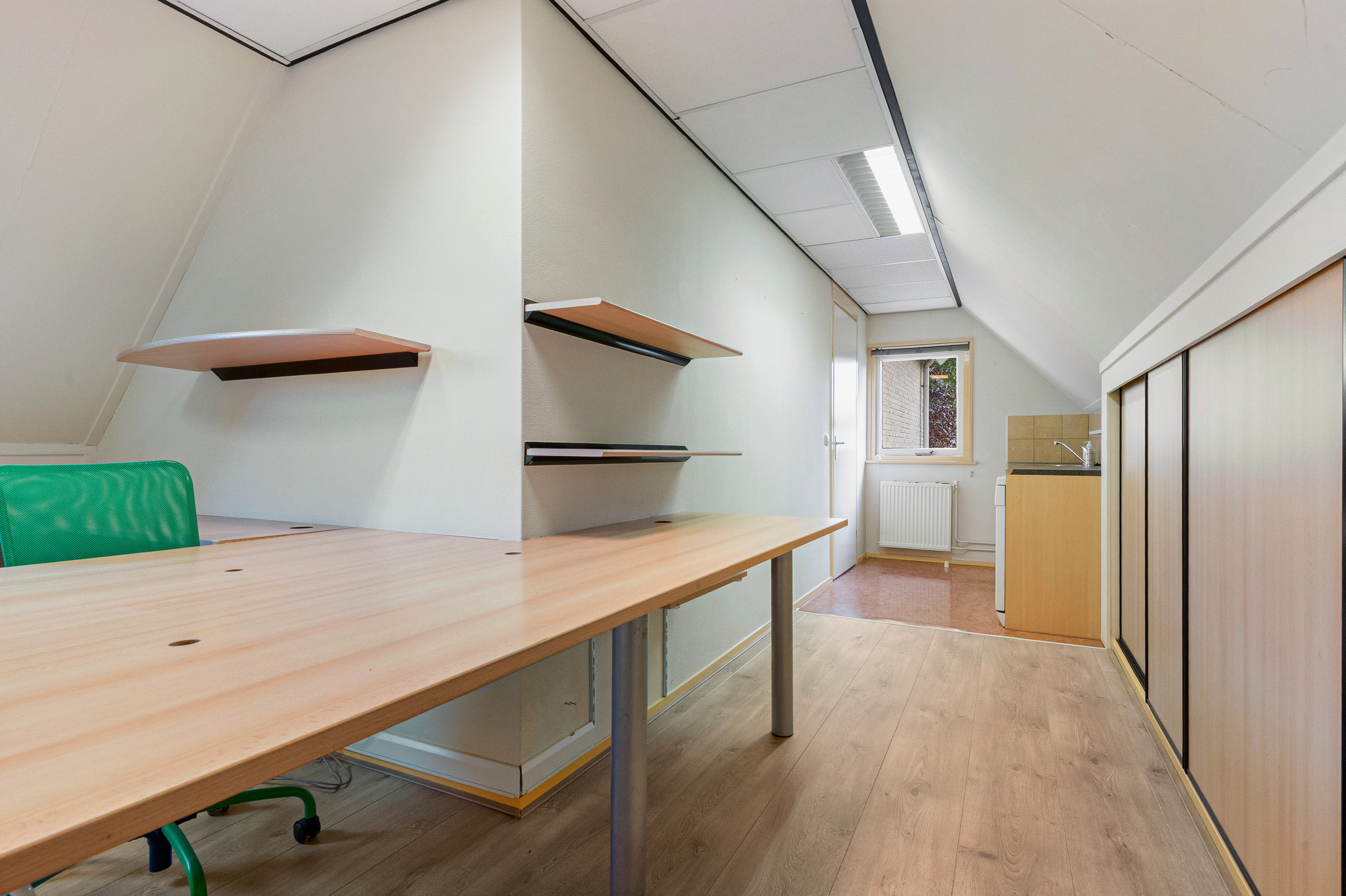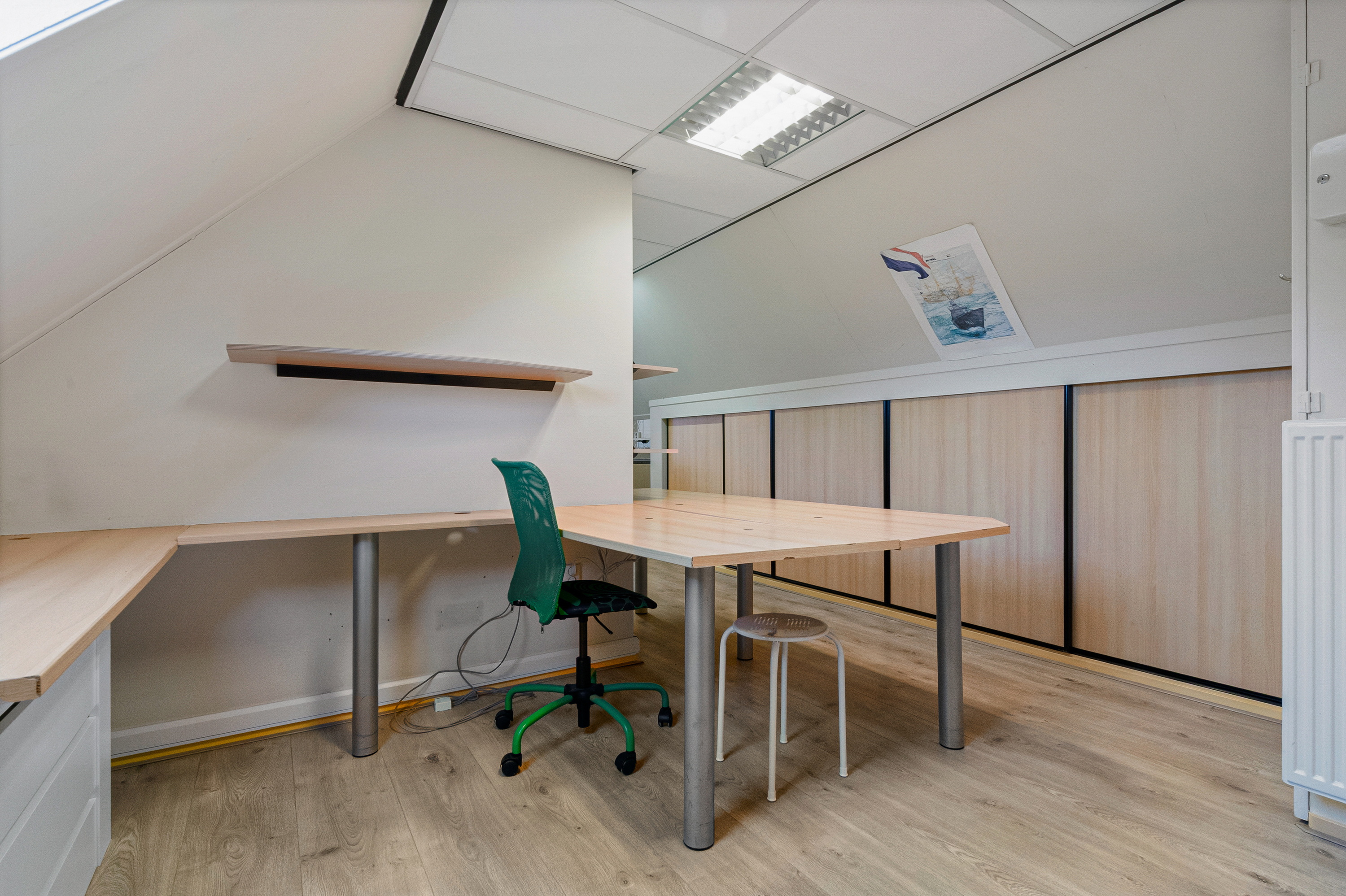 Overloop, 2 grote werk- / logeerruimtes, beide voorzien van een systeemplafond, meerdere Veluxramen, schuifkasten en een pantry / keuken met warm en koud water. Ook bevindt zich hier de 2e CV-combiketel (Nefit) en is er toegang tot de 1e verdieping van de woning. De praktijkruimte is voor vele doeleinden geschikt en is o.a. in gebruik geweest als logopediepraktijk, fysiopraktijk. Ook maakten een zangdocent en een predikant gebruik van de aanbouw als studeerruimte. Uiteraard is ook dubbele bewoning of inwoning mogelijk.