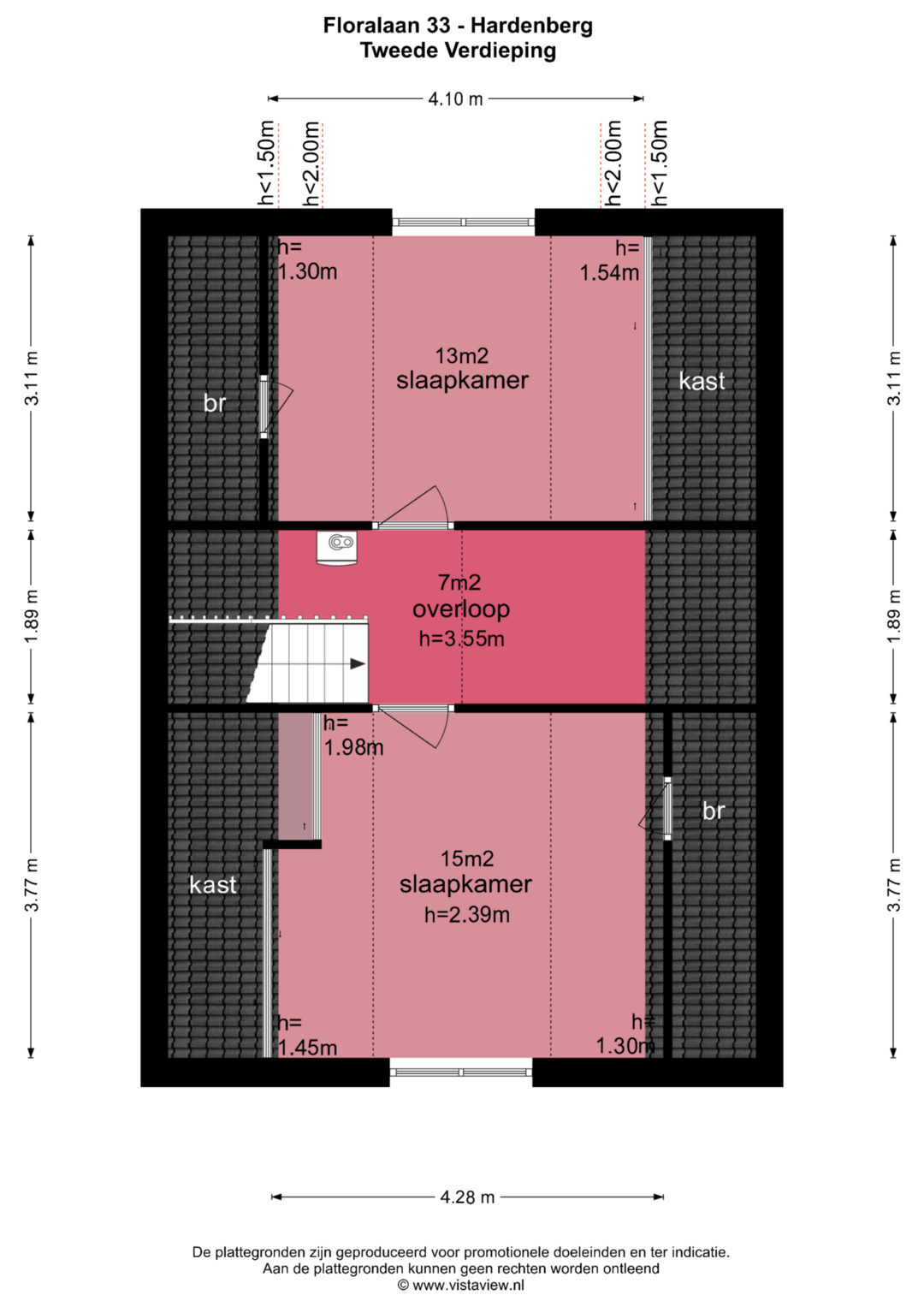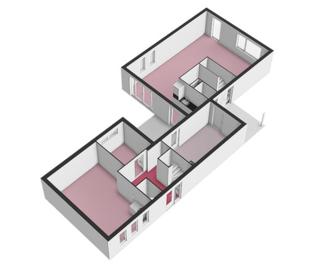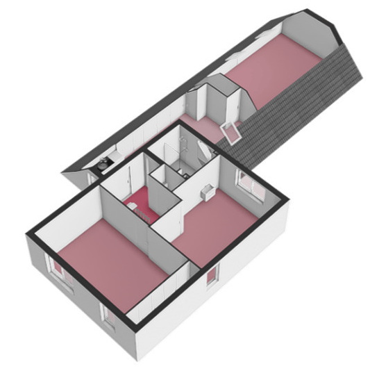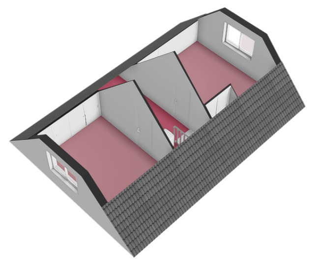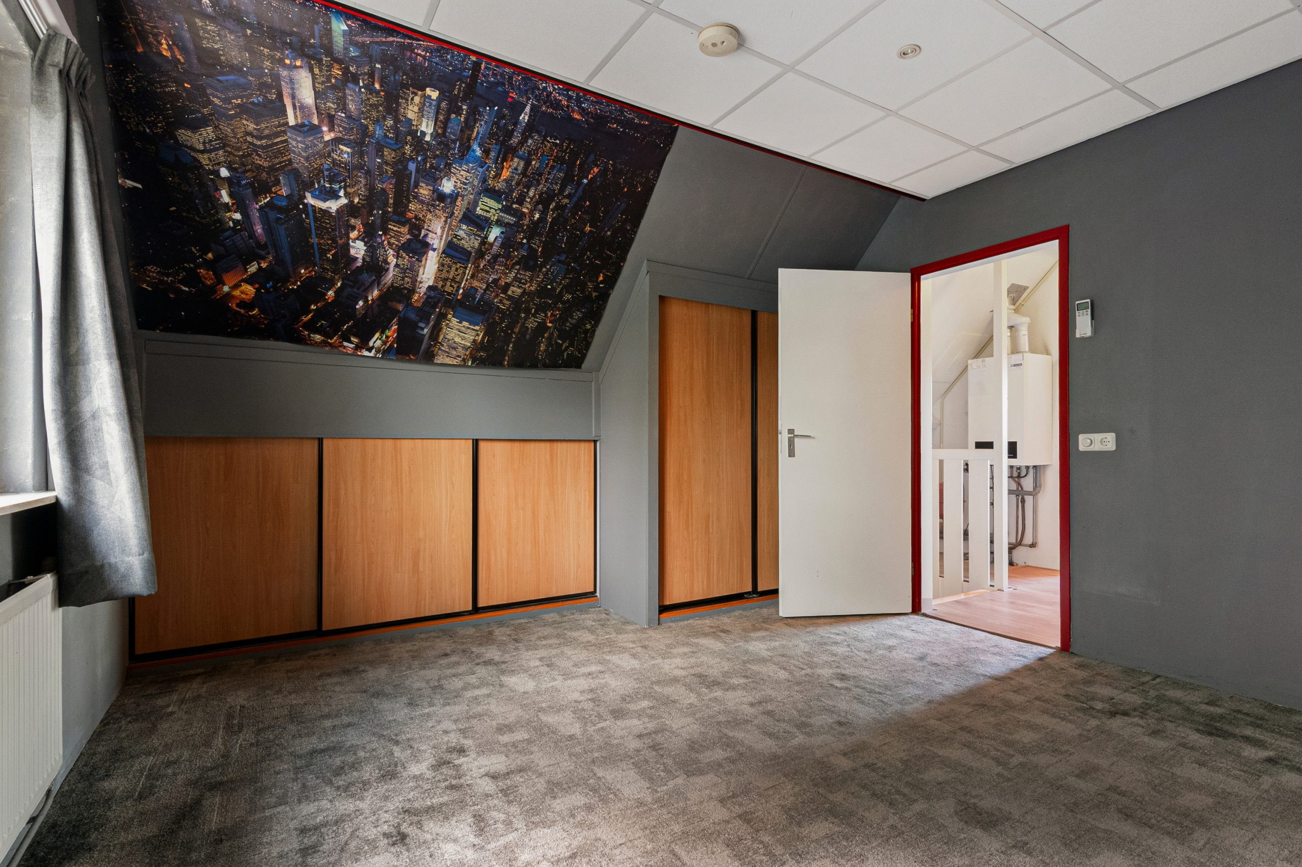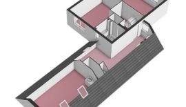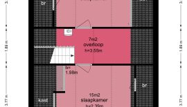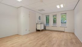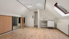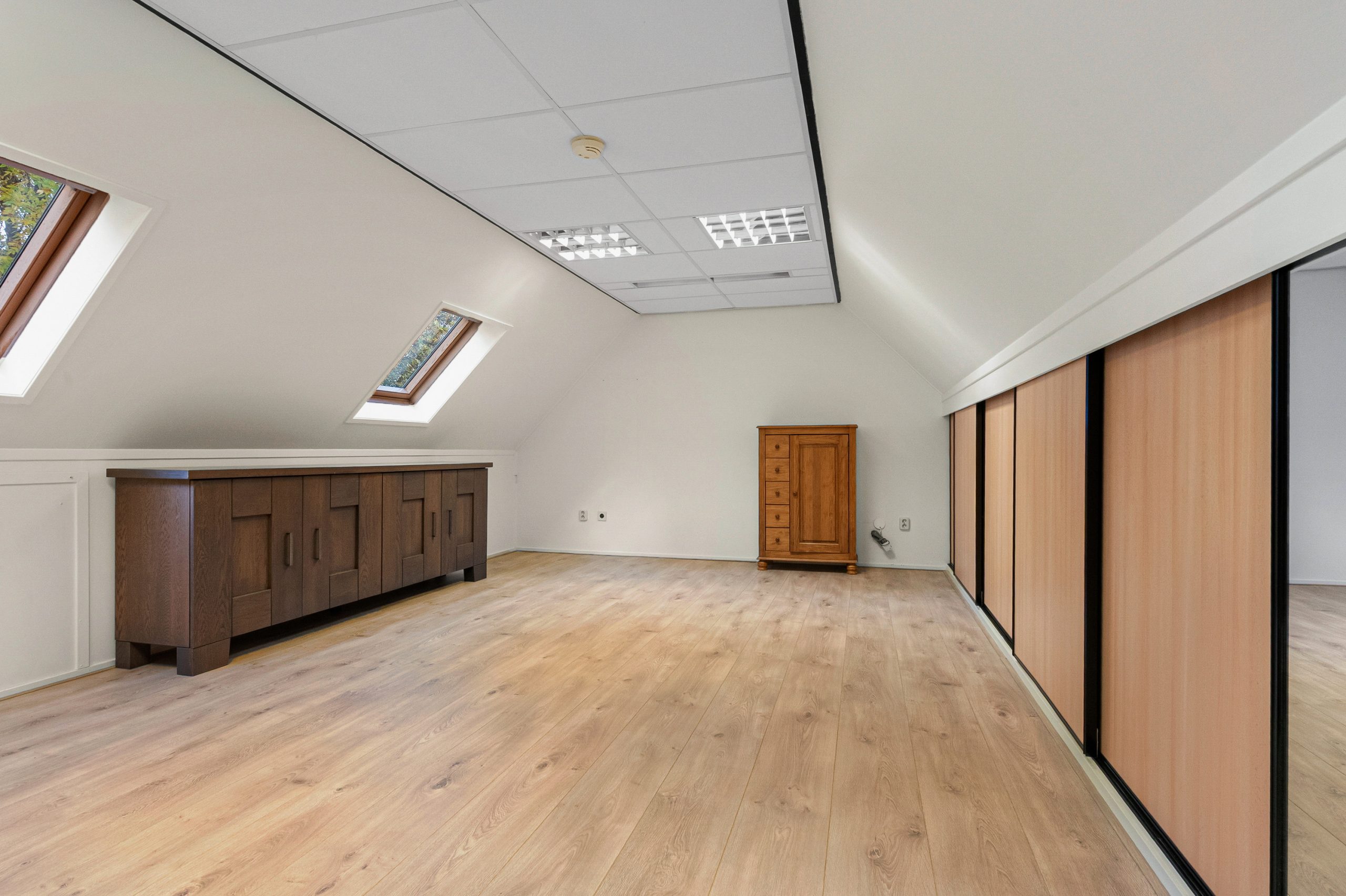 Overloop, 2 grote werk- / logeerruimtes, beide voorzien van een systeemplafond, meerdere Veluxramen, schuifkasten en een pantry / keuken met warm en koud water. Ook bevindt zich hier de 2e CV-combiketel (Nefit) en is er toegang tot de 1e verdieping van de woning. De praktijkruimte is voor vele doeleinden geschikt en is o.a. in gebruik geweest als logopediepraktijk, fysiopraktijk. Ook maakten een zangdocent en een predikant gebruik van de aanbouw als studeerruimte. Uiteraard is ook dubbele bewoning of inwoning mogelijk.