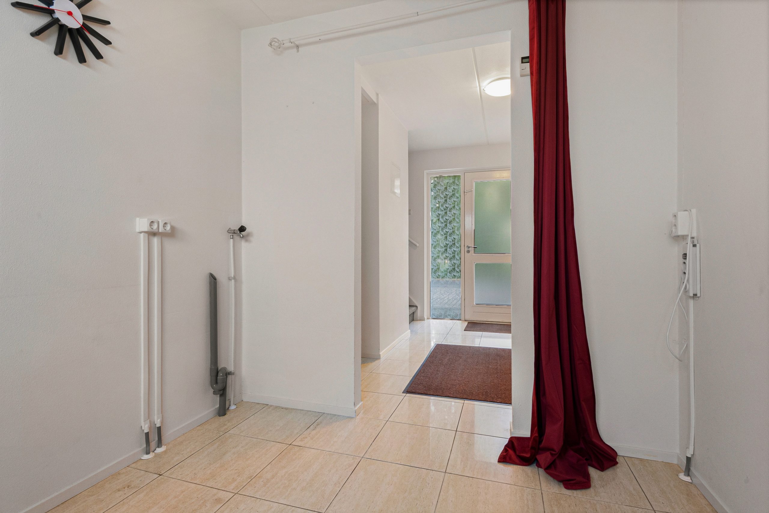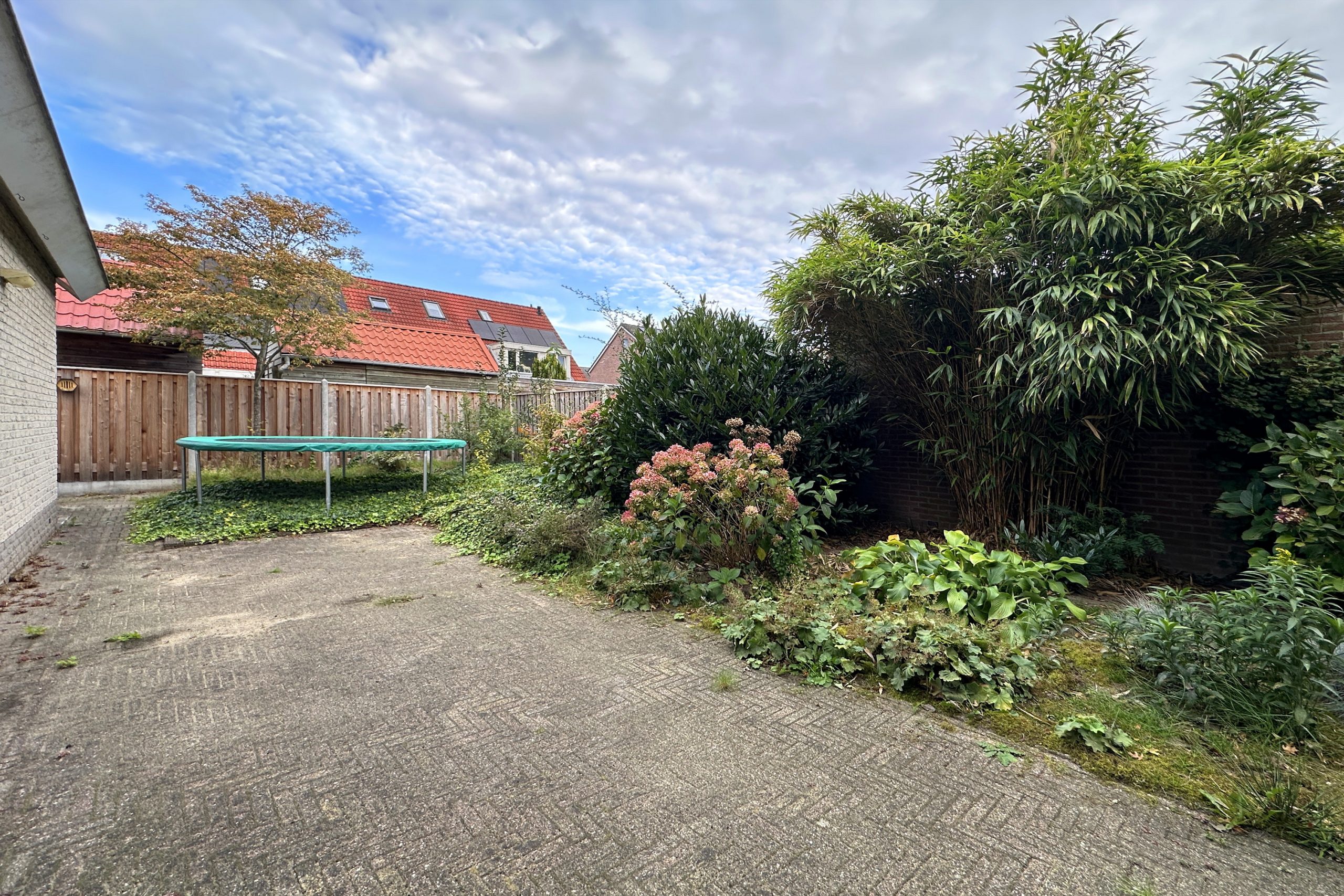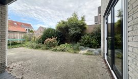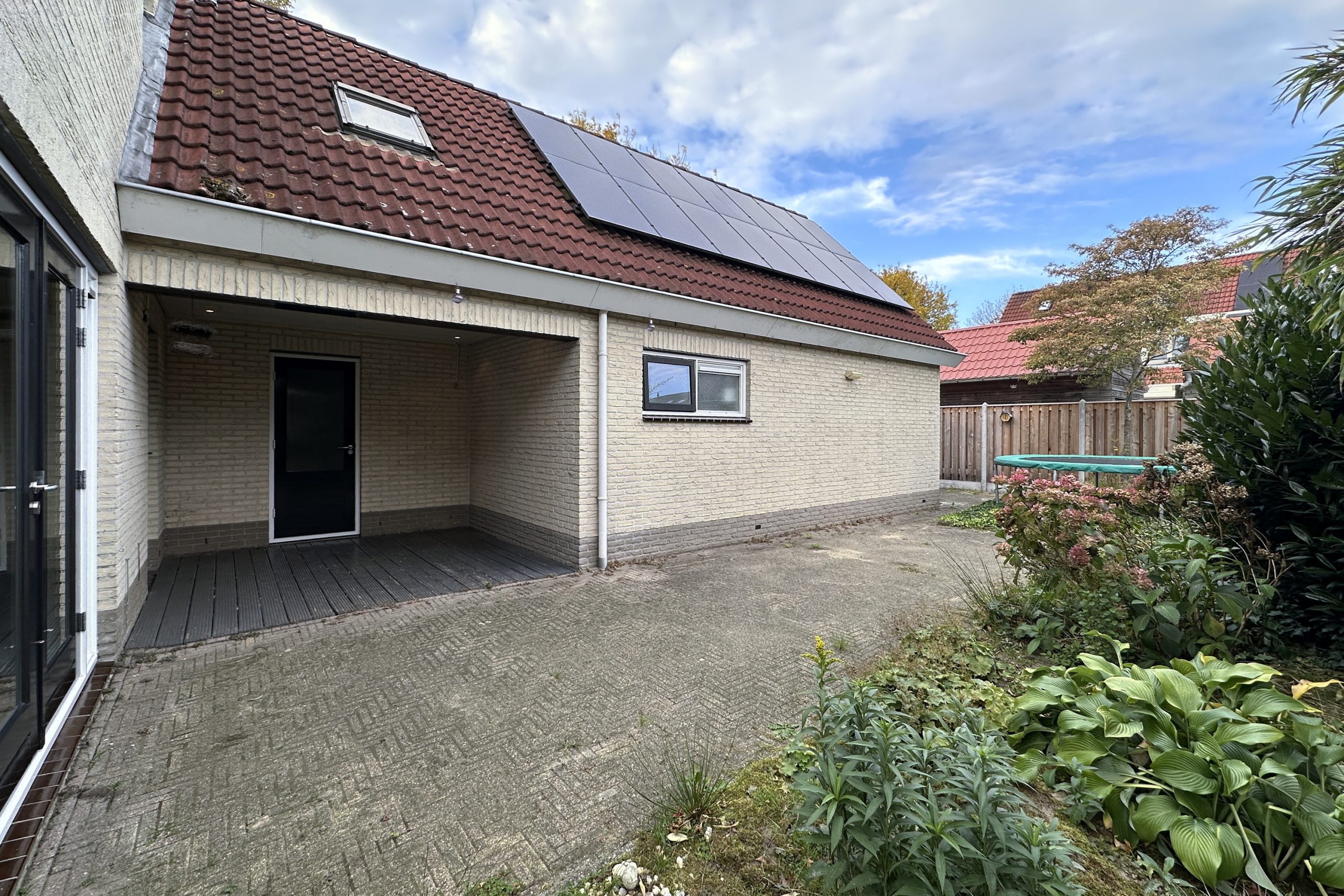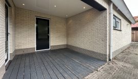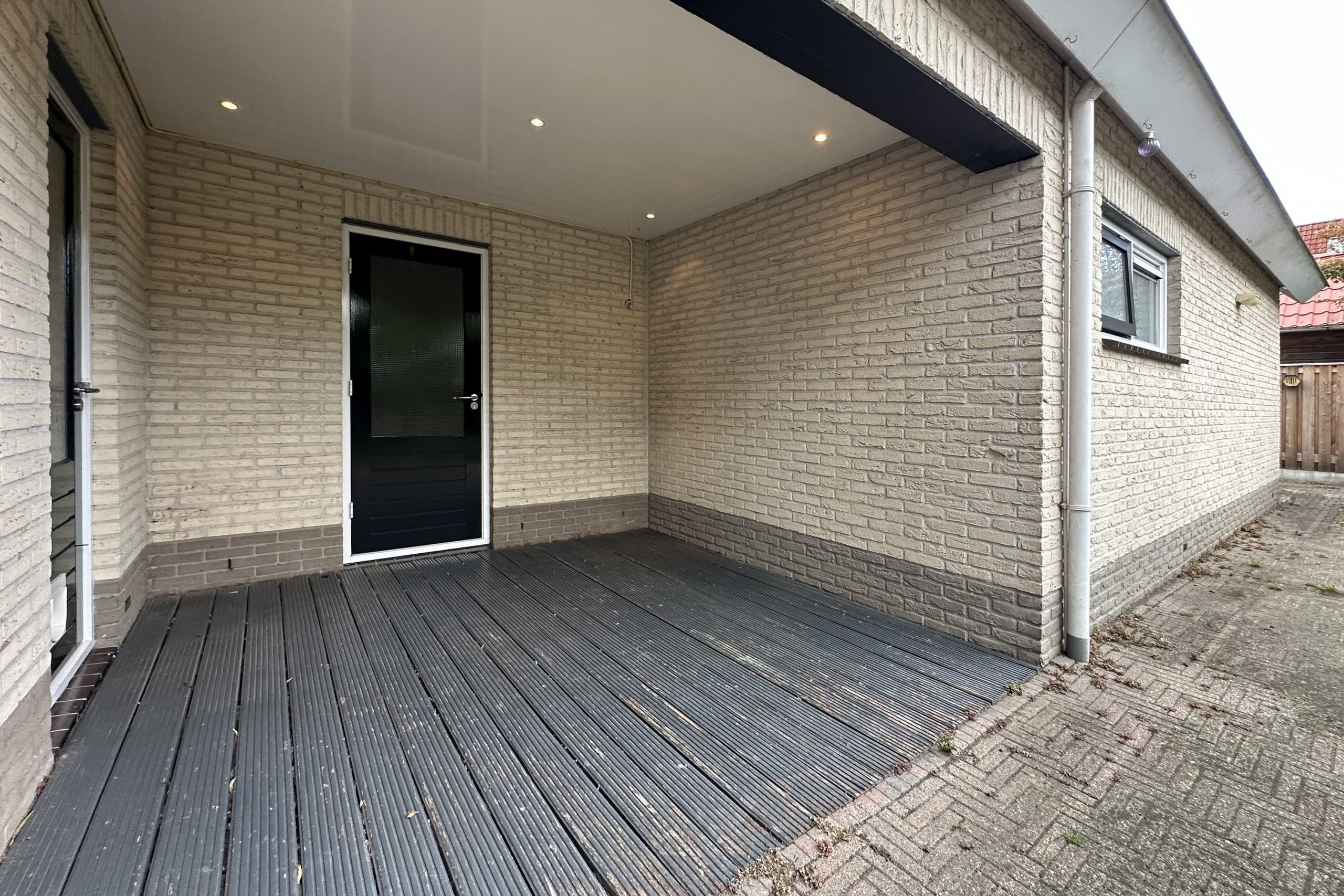 Vanuit de keuken bereik je de overkapping waar je tot laat in de avond heerlijk beschut buiten kunt zitten. Van hieruit heb je toegang tot een royale inpandige en verwarmde berging (voorheen garage) met uitstortgootsteen, toegangsdeur naar de praktijkruimte en een buitendeur naar de carport.
