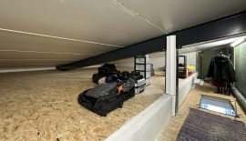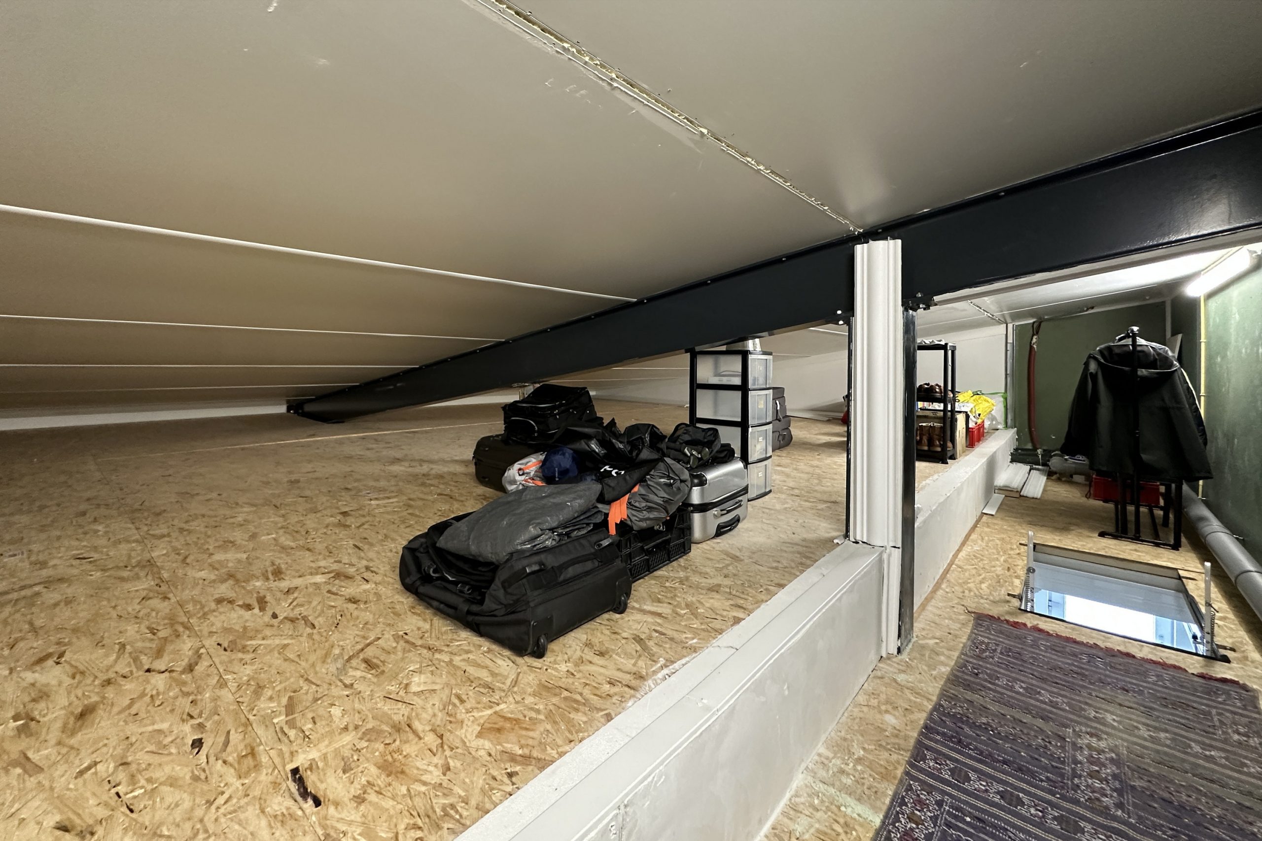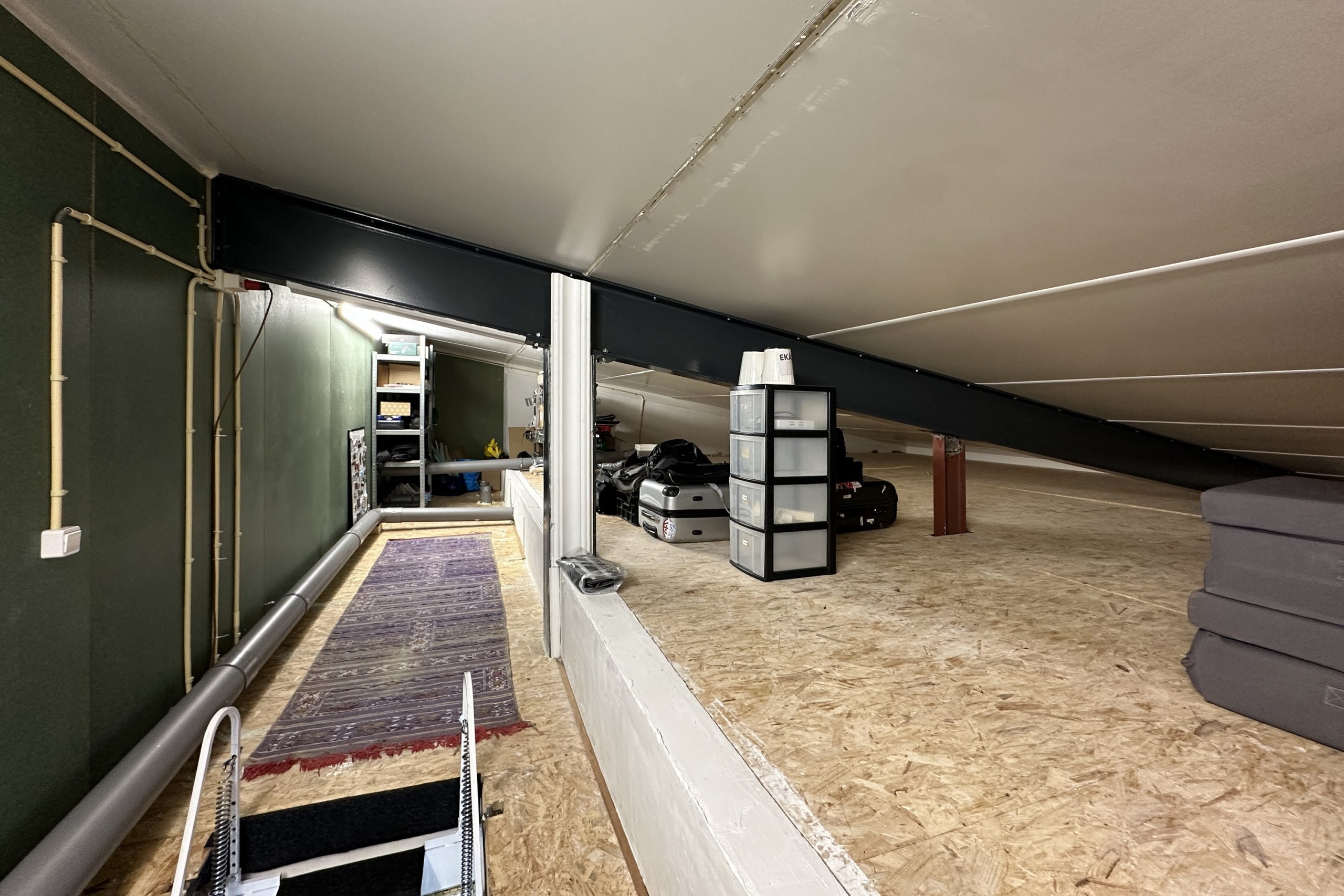 Enorm grote bergruimte (exclusief gemaakt voor deze woning) voor het opslaan van al uw spullen. De zolder is bereikbaar via de elektrisch bedienbare trapeziumtrap.