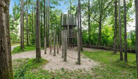 Aan de achterzijde van het gebouw ligt nog een groot wandelpark, het z.g. “Waterwingebied”. Hier bevindt zich ook een prachtige natuurspeeltuin voor kinderen.